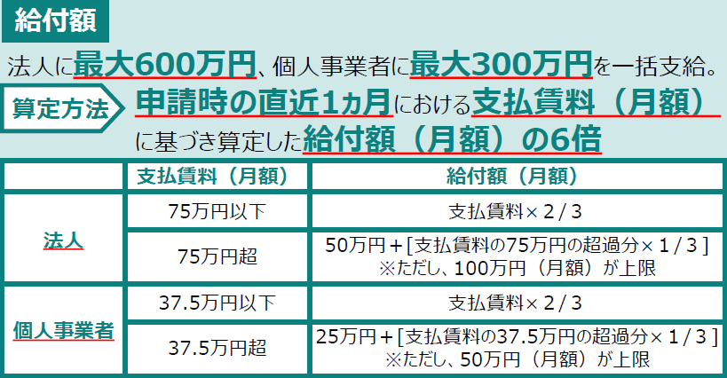※給付予定額の上限は、法人600万円、個人300万円です。