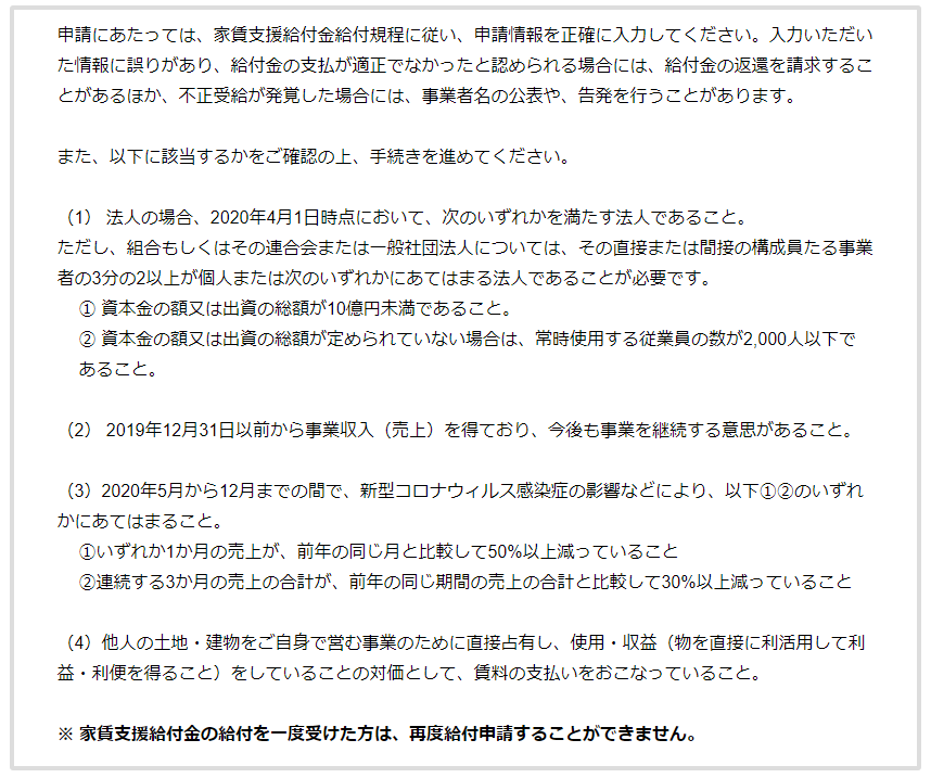 ※法人の場合、月額賃料75万円以下、個人事業者の場合、月額賃料37.5万円以下なら月額賃料の4ヶ月分が支給額となります。